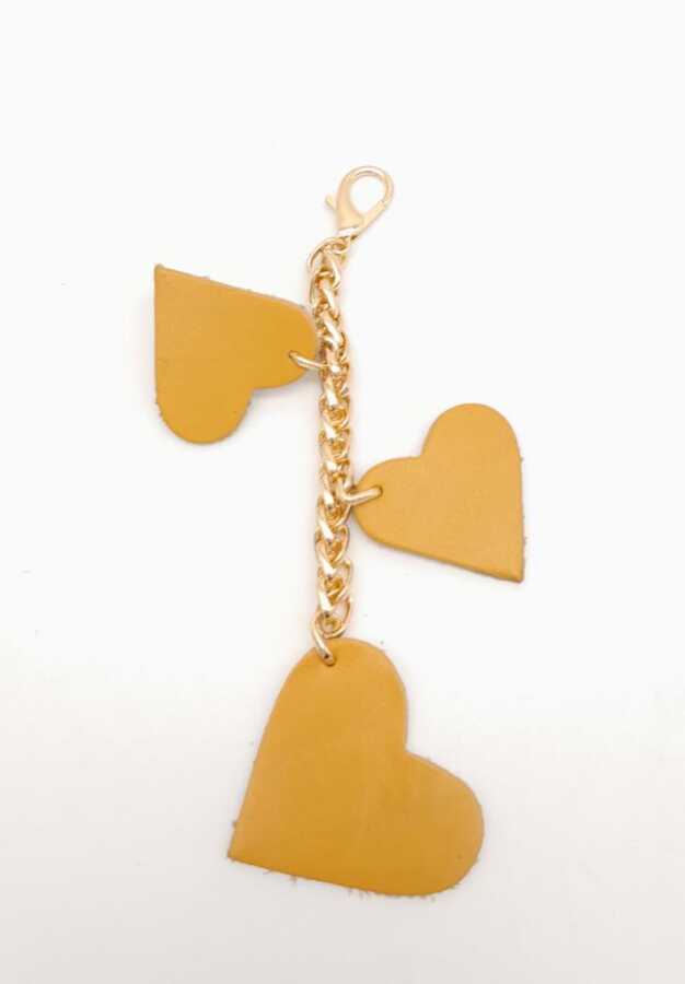 Angel Çanta Aksesuar Hardal Gerçek Deri Kalpli Süs Püskül Light Gold Zincirli