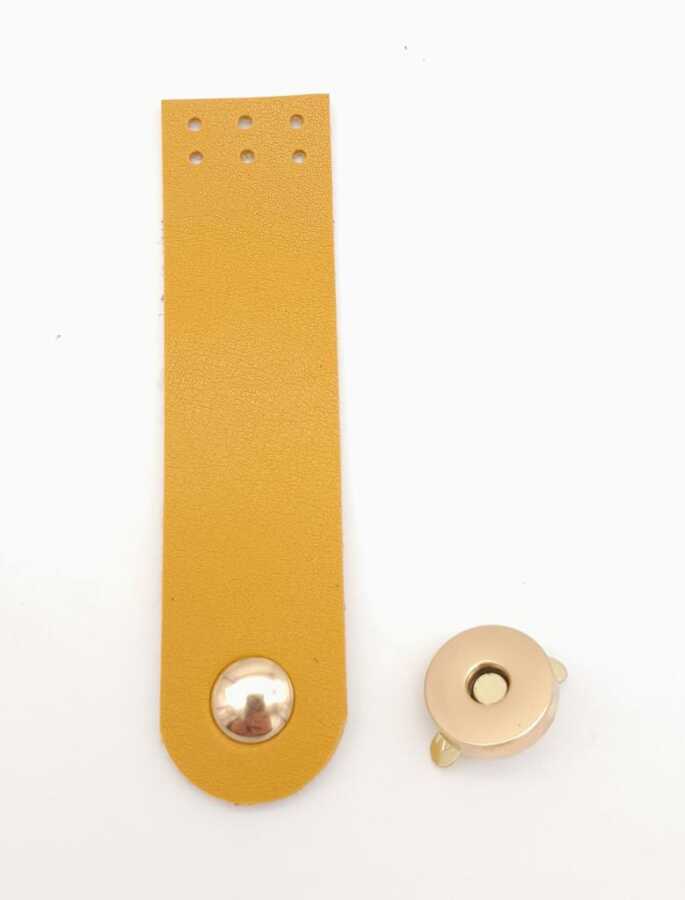 Angel Çanta Aksesuar Hardal Renk Tek Kat Suni Deri Kapak 10.5x2.5 cm Light Gold Metal