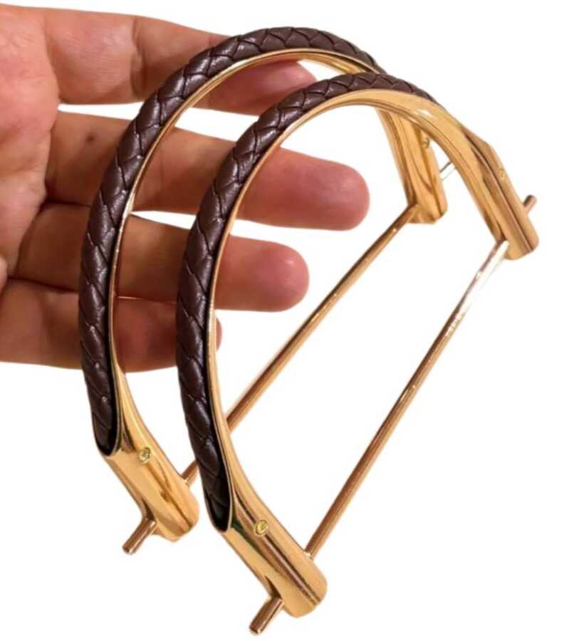 Angel Çanta Aksesuar Kahve Örgü Şeritli Üveyik Model Metal Çanta Sapı