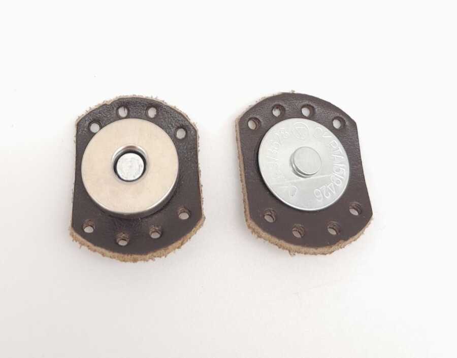 Çap: 3 cm Genişlik: 2,3 cm Dikilebilmesi için kenarlarında delikleri açılmıştır. Gerçek deri kullanılmıştır Mıknatıslı Çıtçıt Kapakların içine tutturmak için kullanılabilir hoş bir görüntü olur ve mıknatıs olarak kapağın kapalı kalmasını sağlar.