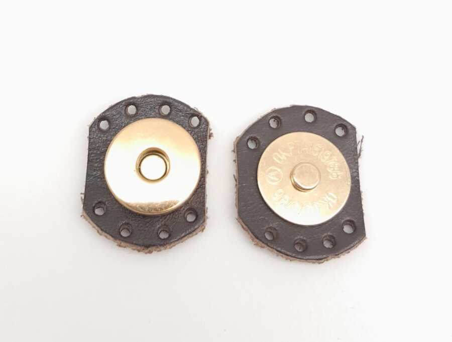 Angel Çanta Aksesuar Kahverengi Gerçek Derili Oval Kenar Mıknatıslı Çıtçıt Light Gold Metalli