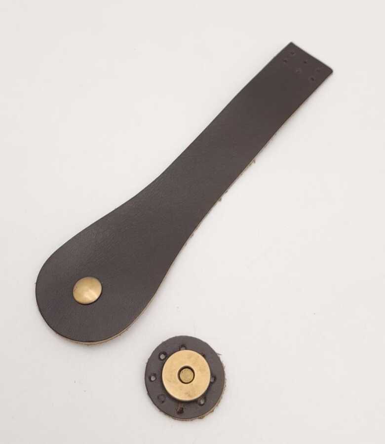 Angel Çanta Aksesuar 11x19 cm Gerçek Deri Çift Mıknatıslı Koyu Kahve Renk Çanta Kapağı Light Gold Metalli