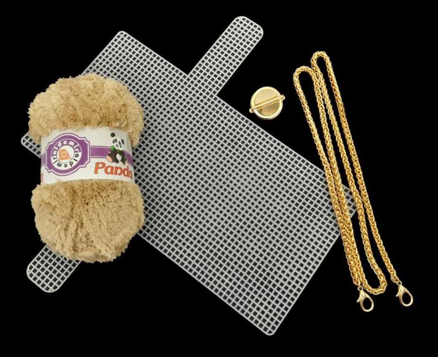 Angel Çanta Aksesuar Kalın Örgü Zincir Panda Kürk İpli Çanta Seti Light Gold