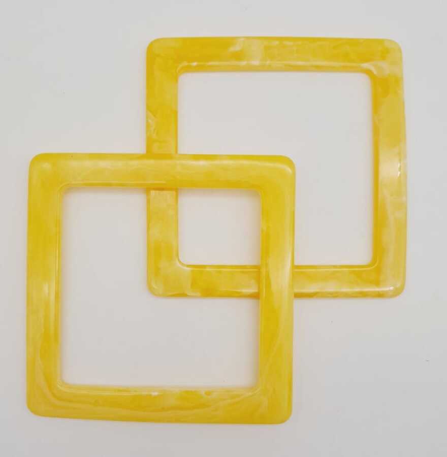 Angel Çanta Aksesuar Kare Akrilik Sarı Renk Mermer Desen Çanta Sapı
