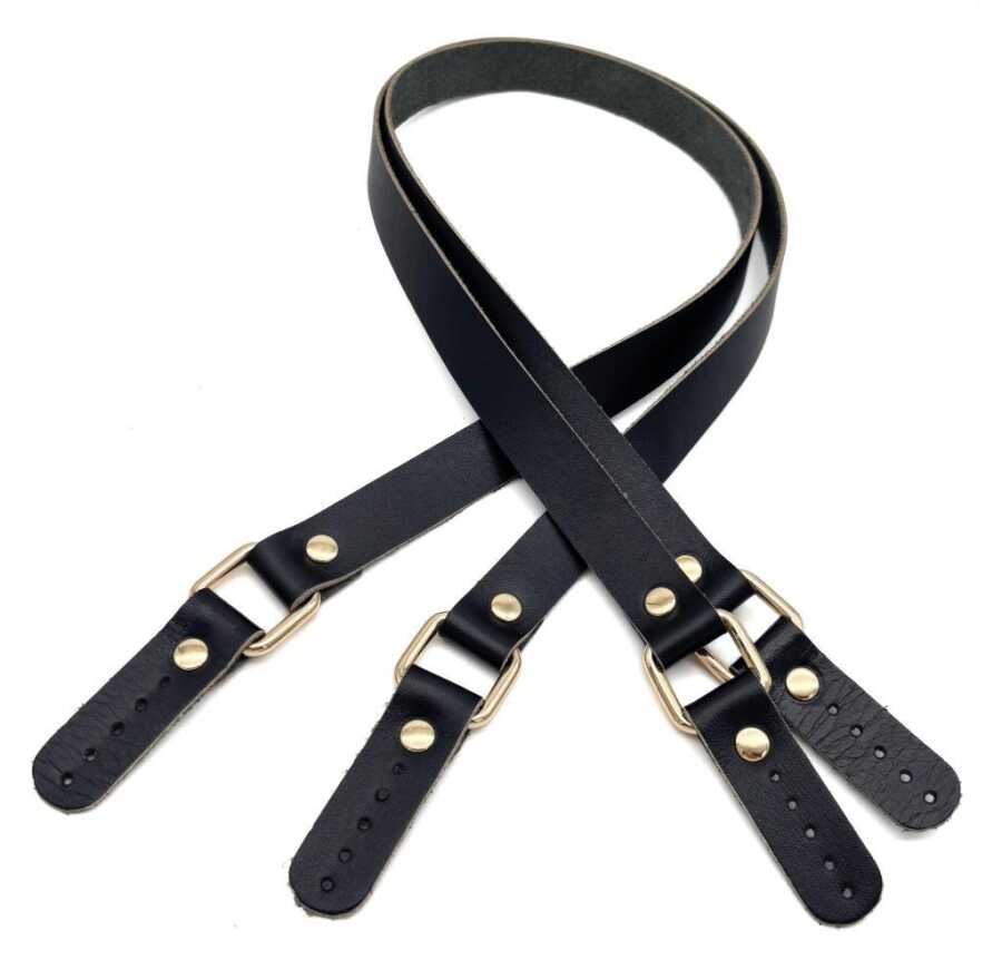 Angel Çanta Aksesuar Karedört Model Gerçek Deri Siyah Renk Çanta Sapı Light Gold Metal