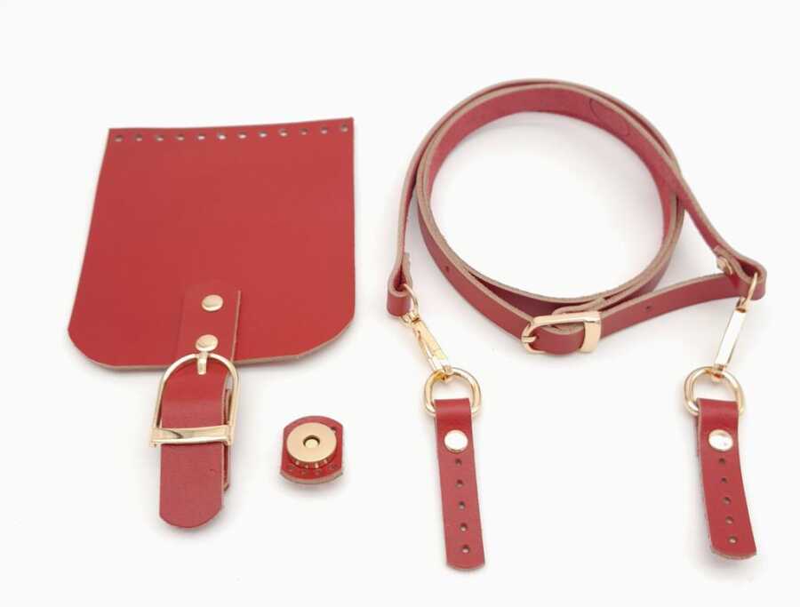 Angel Çanta Aksesuar Kırmızı Gerçek Deri 130x1.5 cm Ayarlı Saplı Çanta Seti Light Gold Metalli