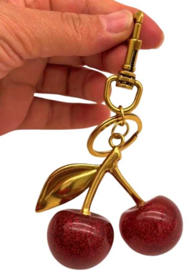 Angel Çanta Aksesuar Kırmızı Simli Kiraz Anahtarlık , Çanta Süsü Antik- Gold Metalli