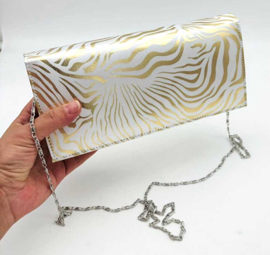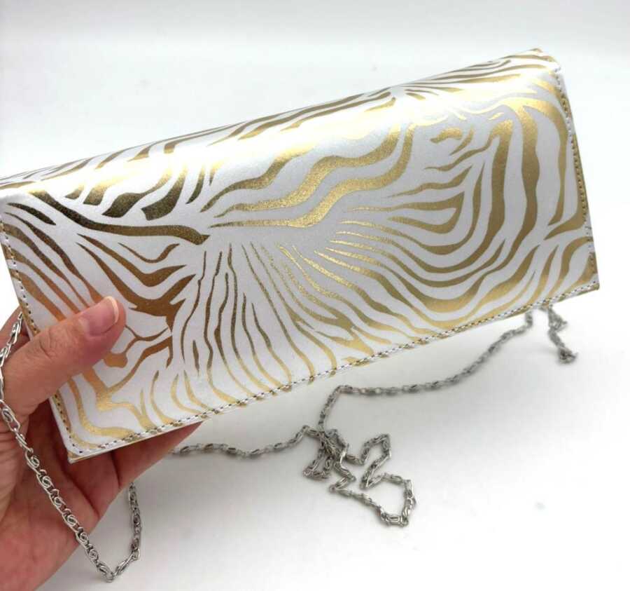 Angel Çanta Aksesuar Gold Zebra Desenli Abiye Çanta Zincirli