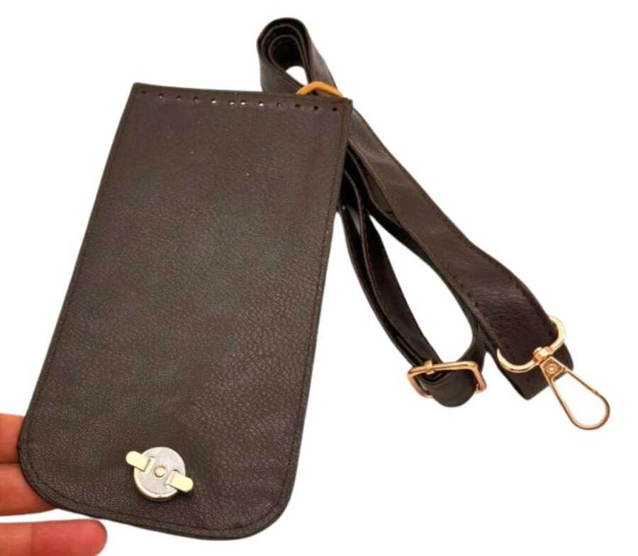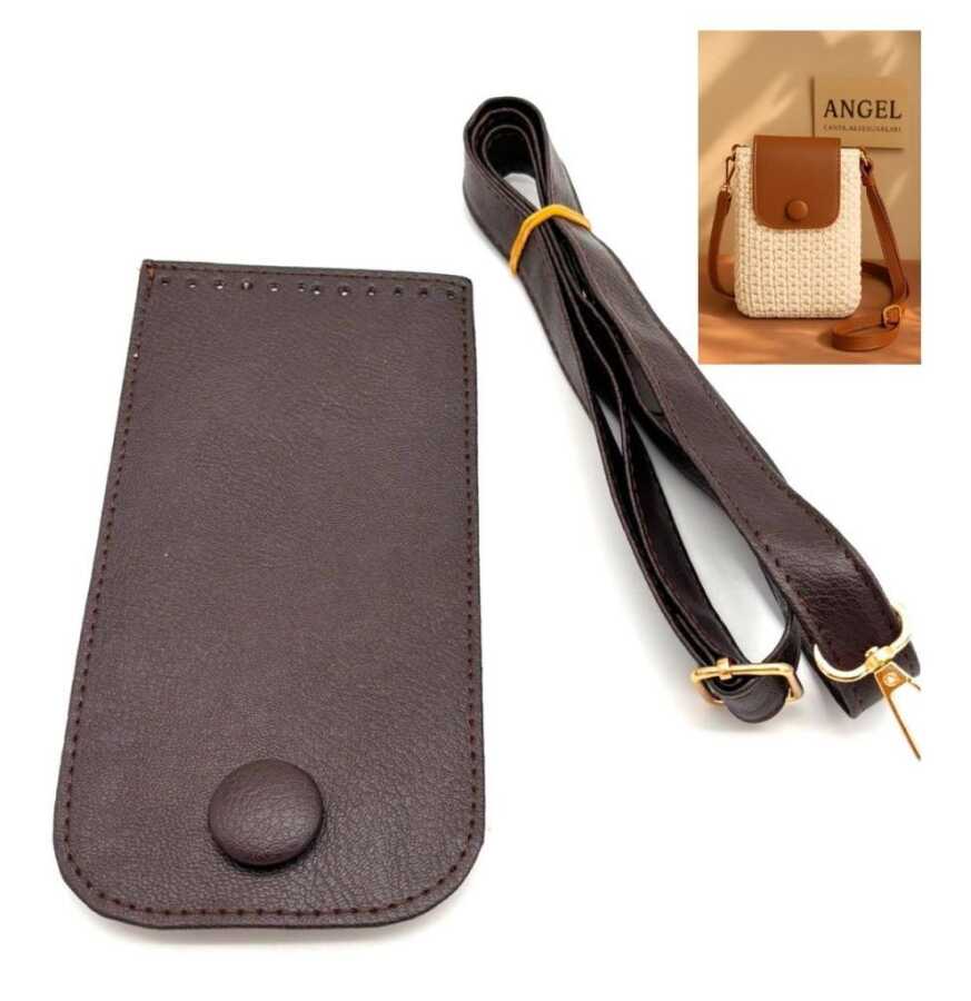 Angel Çanta Aksesuar Koyu Kahve Renk Button Model Çanta Yapım Seti Light Gold Metalli