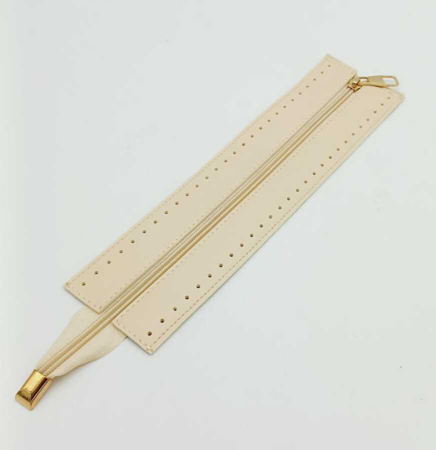 Angel Çanta Aksesuar Krem Renk 28 Cm Derili Fermuar Light Gold Metalli