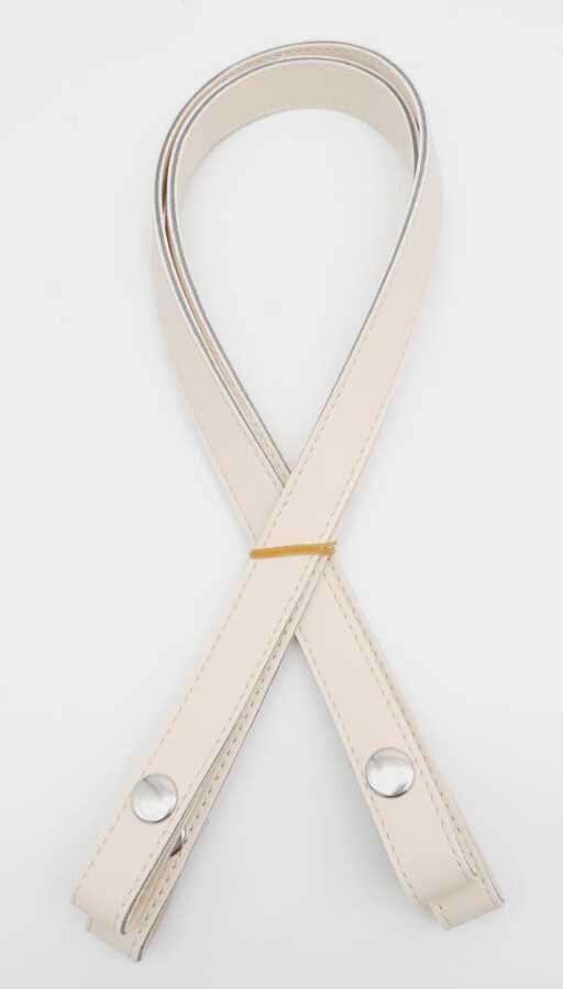 Angel Çanta Aksesuar Çift Kat Dikişli Suni Deri Krem Çıtçıtlı Çanta Sapı 70 cm Gümüş Metalli