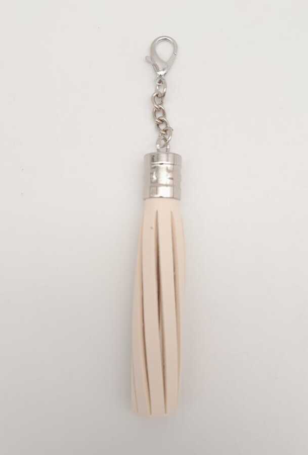 Angel Çanta Aksesuar Krem Suni Deri Kovanlı Püskül Gümüş Metalli
