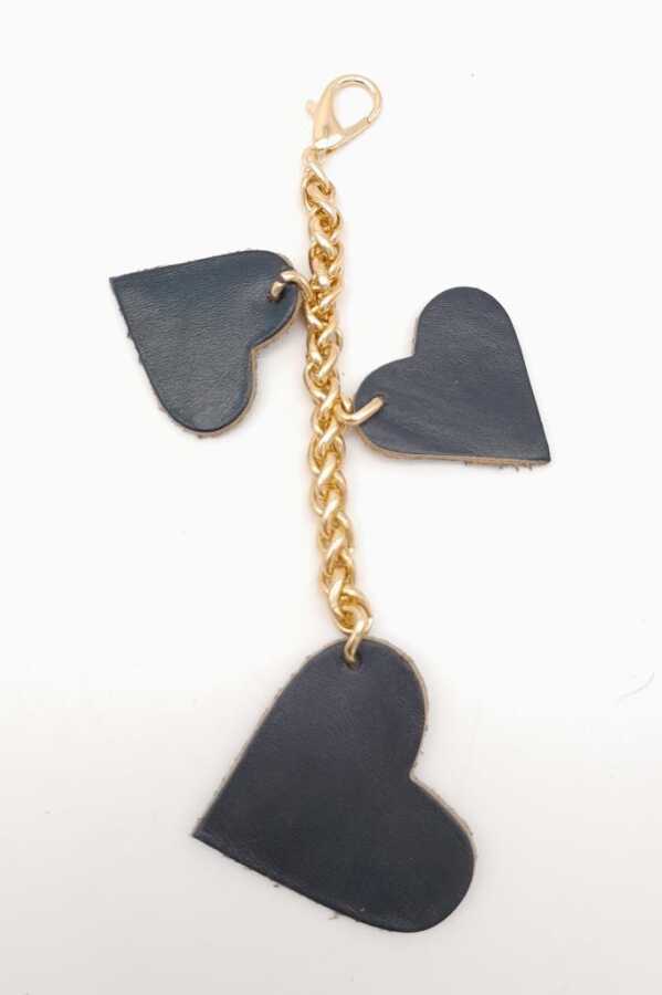 Angel Çanta Aksesuar Lacivert Gerçek Deri Kalpli Süs Püskül Light Gold Zincirli