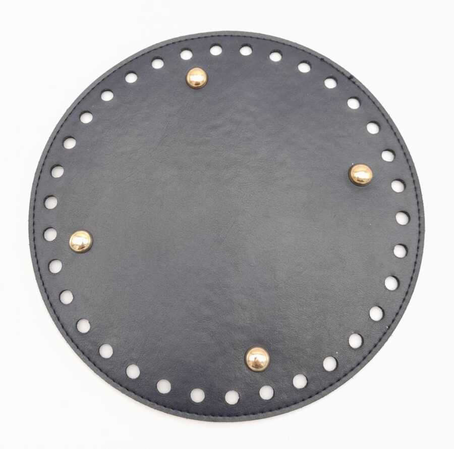 Angel Çanta Aksesuar Lacivert Suni Deri 20 cm Yuvarlak Çanta Tabanı Light Gold Metalli