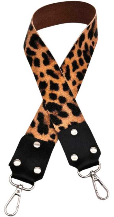 Angel Çanta Aksesuar Ledi Moel Leopar Desenli Tek Çanta Sapı Gümüş Metalli