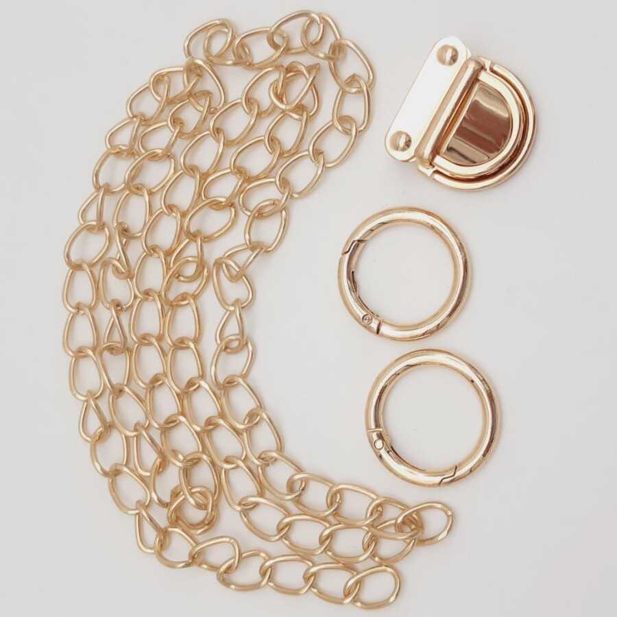 Angel Çanta Aksesuar Light Gold Renk İnce Zincir Uzun Kilit Set