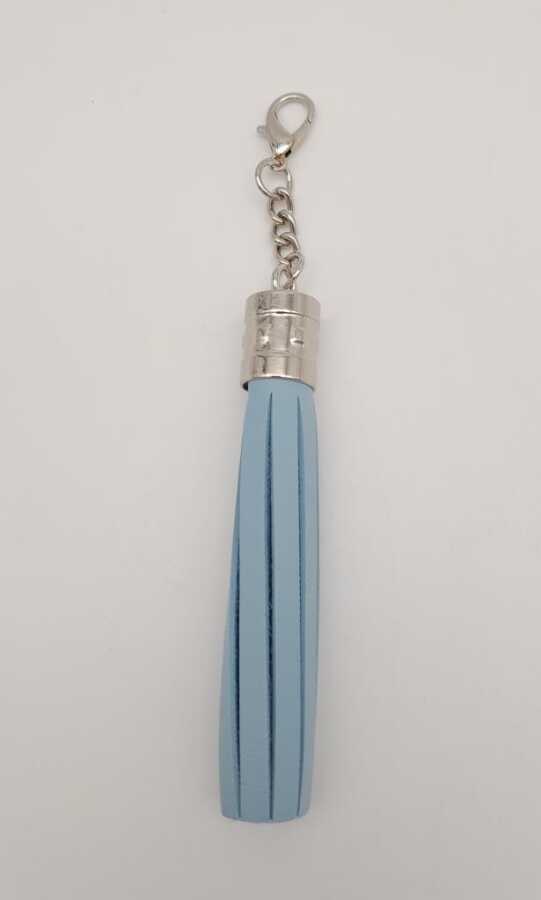 Angel Çanta Aksesuar Mavi Suni Deri Kovanlı Püskül Gümüş Metalli