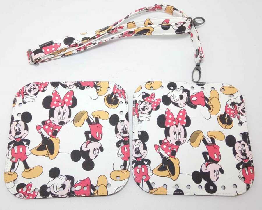 Angel Çanta Aksesuar Miki Mouse Desenli 2 Kare Plaka Ayarlamalı Sap Çanta Seti