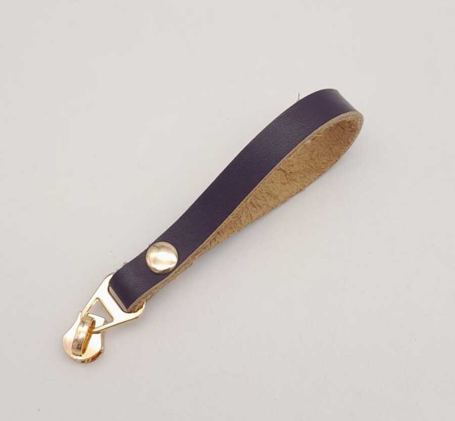 Angel Çanta Aksesuar Mor Gerçek Derili Light Gold Döngülü Fermuar Başı