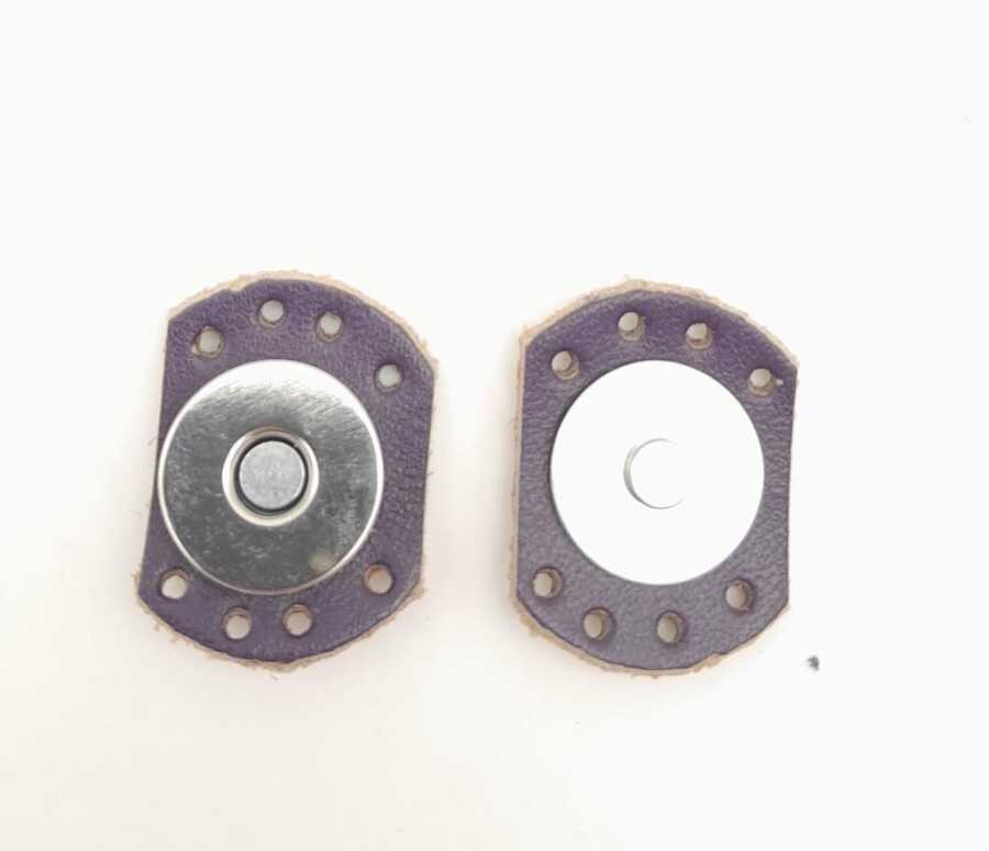 Angel Çanta Aksesuar Mor Renk Gerçek Derili Oval Kenar Mıknatıslı Çıtçıt Gümüş Metalli