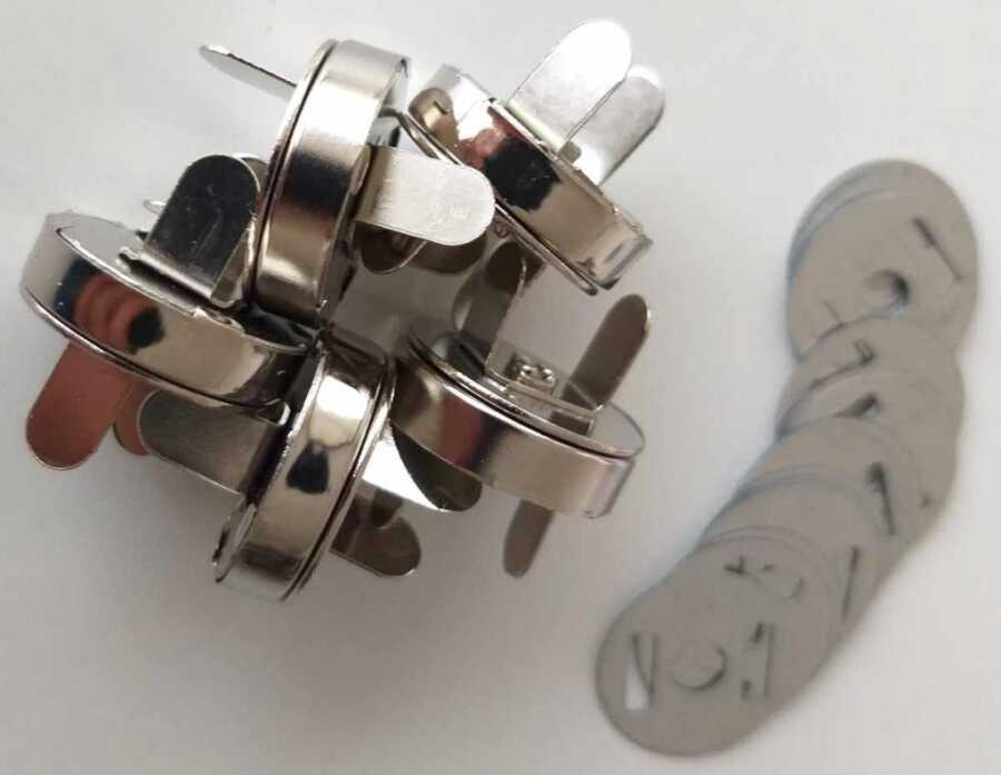 Mıknatıslar 1.8 cm çapındadır. İki ana parçadan oluşur. Bu parçaların arkasındaki ayaklar örgüye saplanır. İçten çıkan ayaklara tenekeler geçirilir. Tenekenin üzerine ayaklar kıvrılarak sabitleme yapılır.