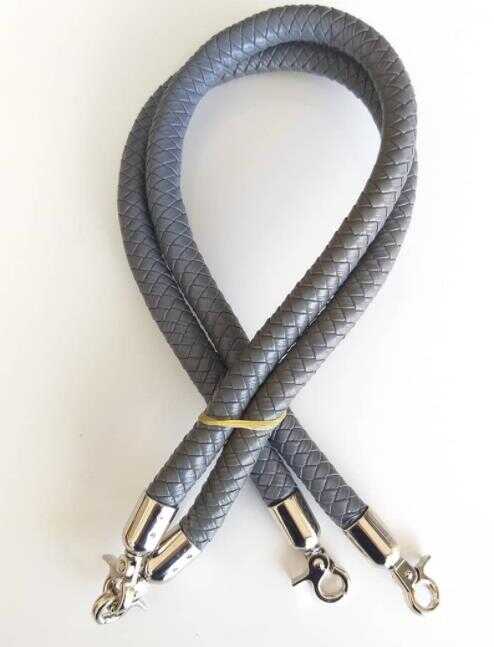 60-65 cm civarında örme suni deri çanta sapı. Uç Metalleri gümüş renklidir. Uçlardaki yaylı kancalar açılıp kapanabilen özelliktedir. Örgüye doğrudan monte edebilirsiniz. Yaylı halka veya D halka kullanarak da monte edebilirsiniz.