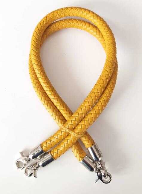 60-65 cm civarında örme suni deri çanta sapı. Uç Metalleri gümüş renklidir. Uçlardaki yaylı kancalar açılıp kapanabilen özelliktedir. Örgüye doğrudan monte edebilirsiniz. Yaylı halka veya D halka kullanarak da monte edebilirsiniz.