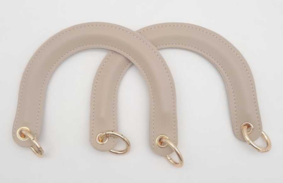 Angel Çanta Aksesuar Yaylı Halkalı Kapsüllü Suni Deri Bej Renk Tutma Sapı Light Gold Metalli