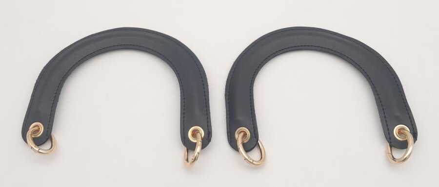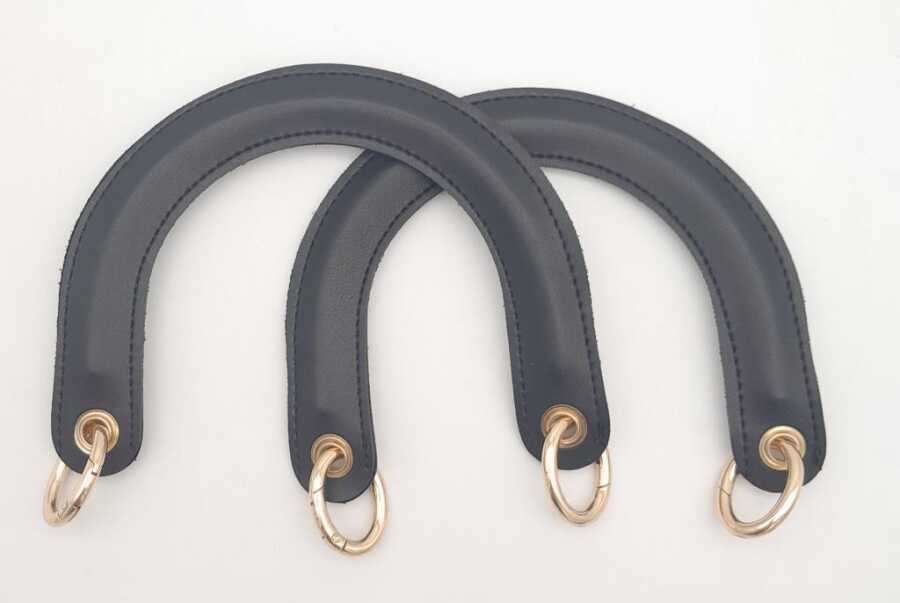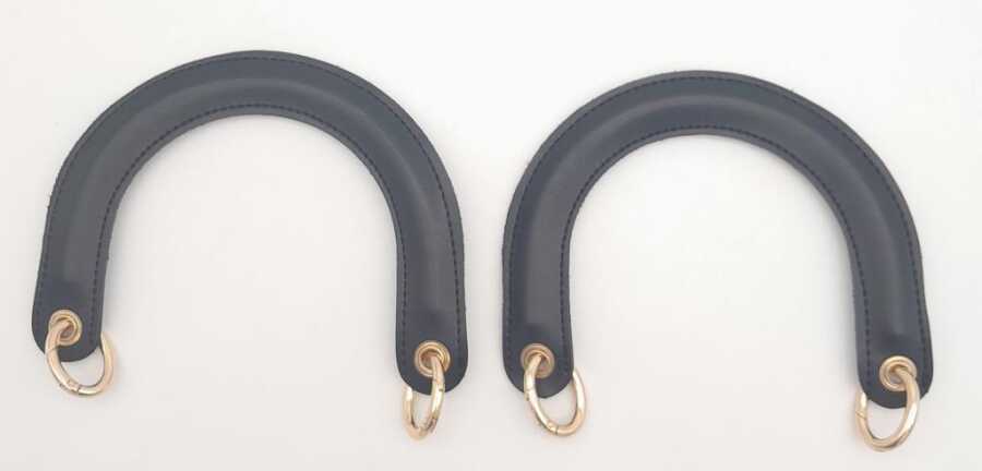 Angel Çanta Aksesuar Yaylı Halkalı Kapsüllü Suni Deri Siyah Renk Tutma Sapı Light Gold Metalli