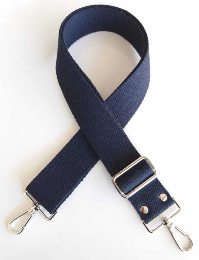 Angel Çanta Aksesuar Pamuklu Kolon 120X4 Cm Gümüş Metal Lacivert