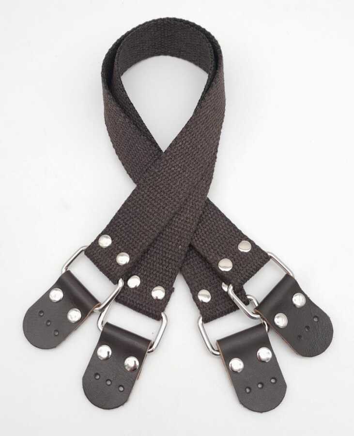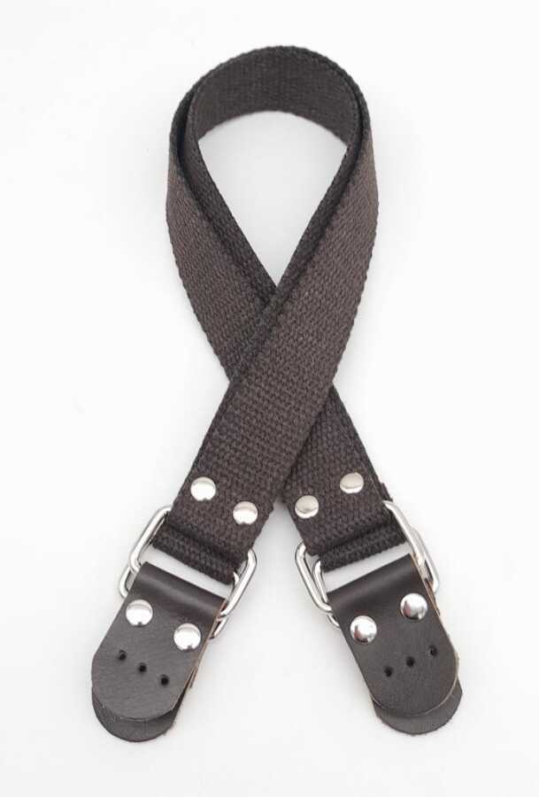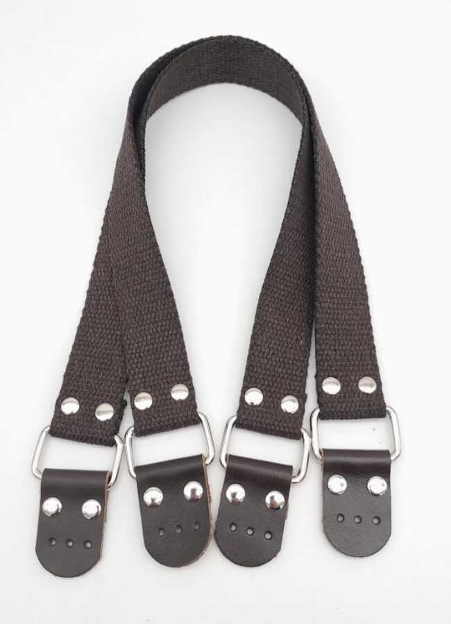 Angel Çanta Aksesuar Pamuklu Kolon 57X3 Cm Derili Kahverengi Çanta Sapı Gümüş Metalli