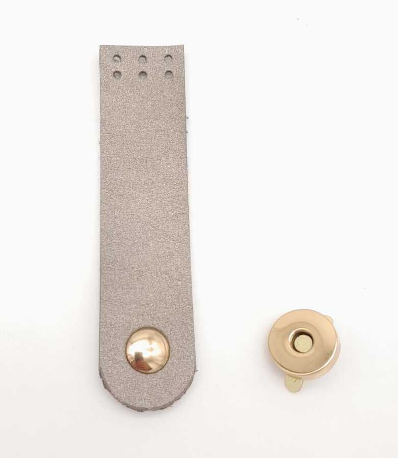 Angel Çanta Aksesuar Parlak Gri Renk Tek Kat Suni Deri Kapak 10.5x2.5 cm Light Gold Metal