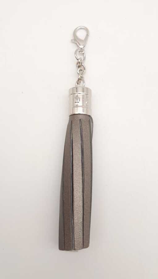 Angel Çanta Aksesuar Parlak Gri Suni Deri Kovanlı Püskül Gümüş Metalli
