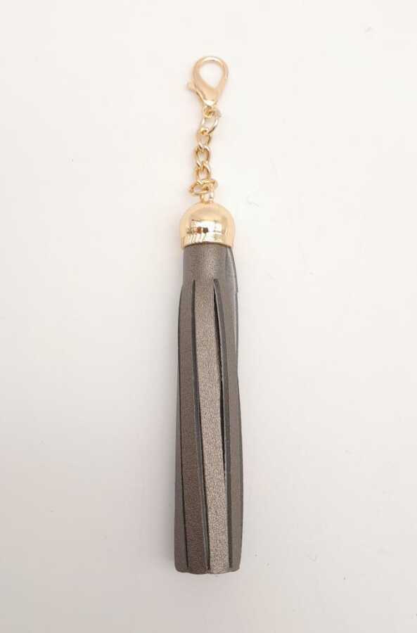 Angel Çanta Aksesuar Parlak Gri Suni Deri Kovanlı Püskül Light Gold Metalli