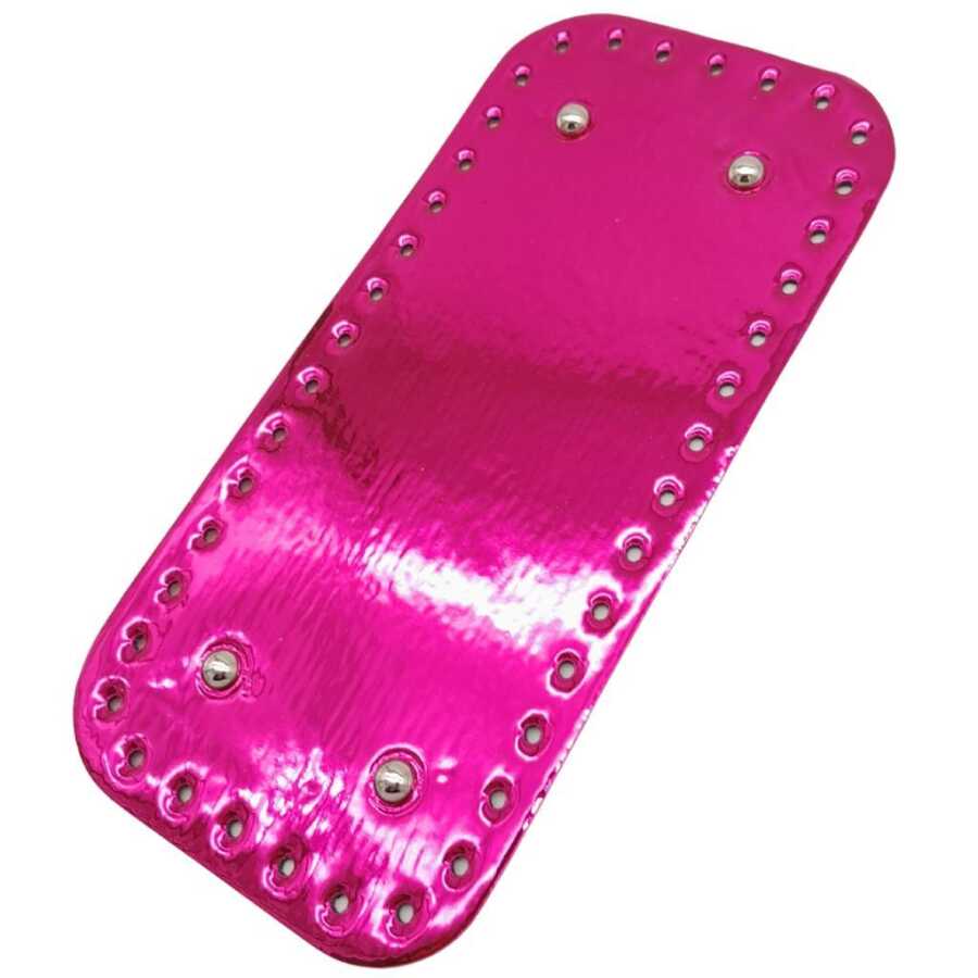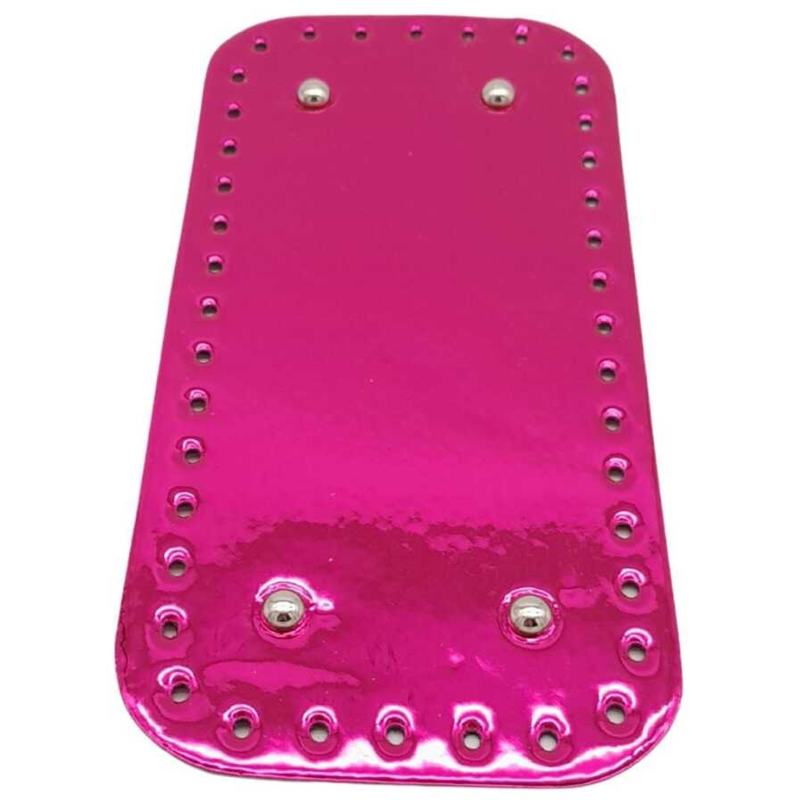 Angel Çanta Aksesuar Parlak Rugan Deri 25x12 cm Dikdörtgen Çanta Tabanı Fuşya Renk Gümüş Metalli