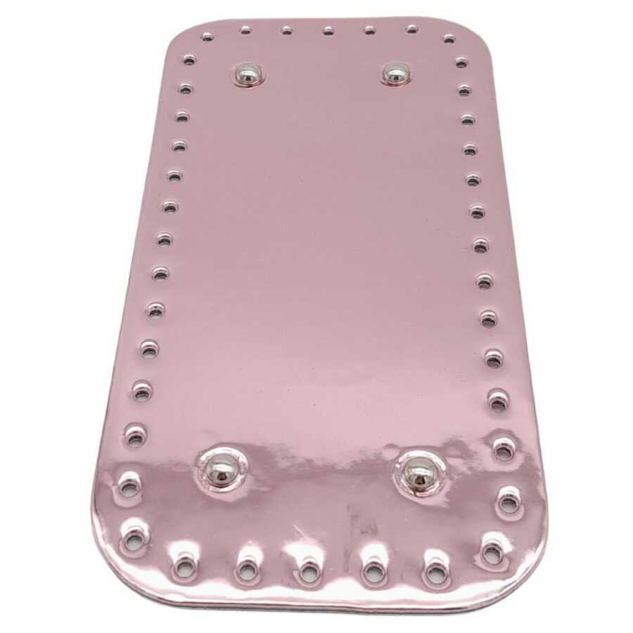 Angel Çanta Aksesuar Parlak Rugan Deri 25x12 cm Dikdörtgen Çanta Tabanı Pudra Renk Gümüş Metalli