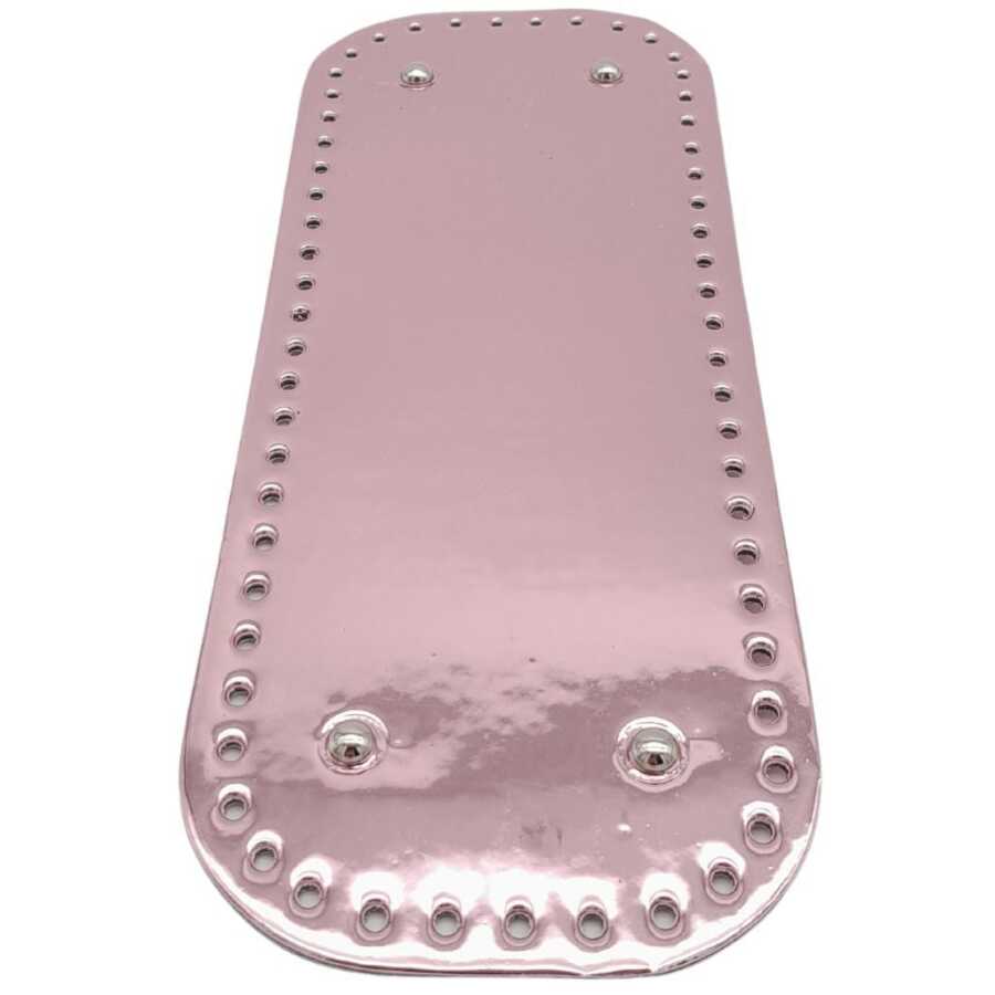 Angel Çanta Aksesuar Parlak Rugan Deri 32x12 cm Dikdörtgen Çanta Tabanı Pudra Renk Gümüş Metalli