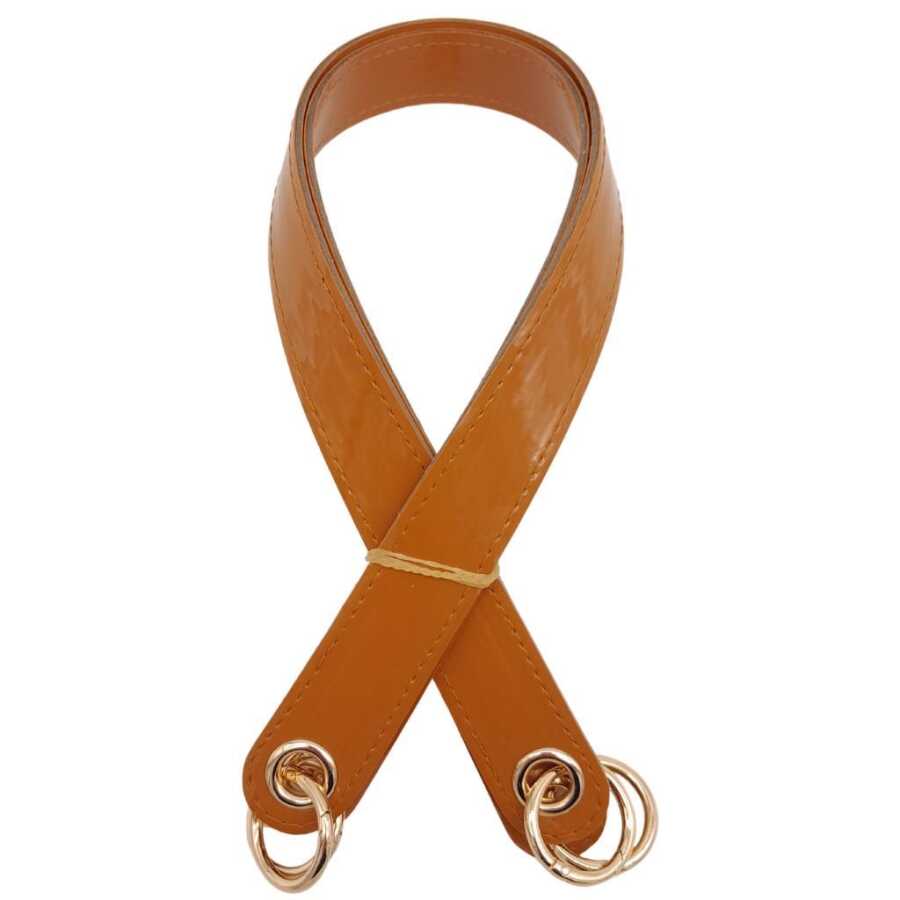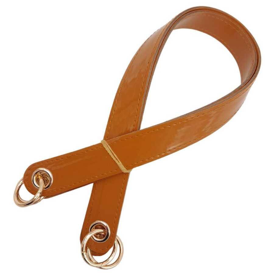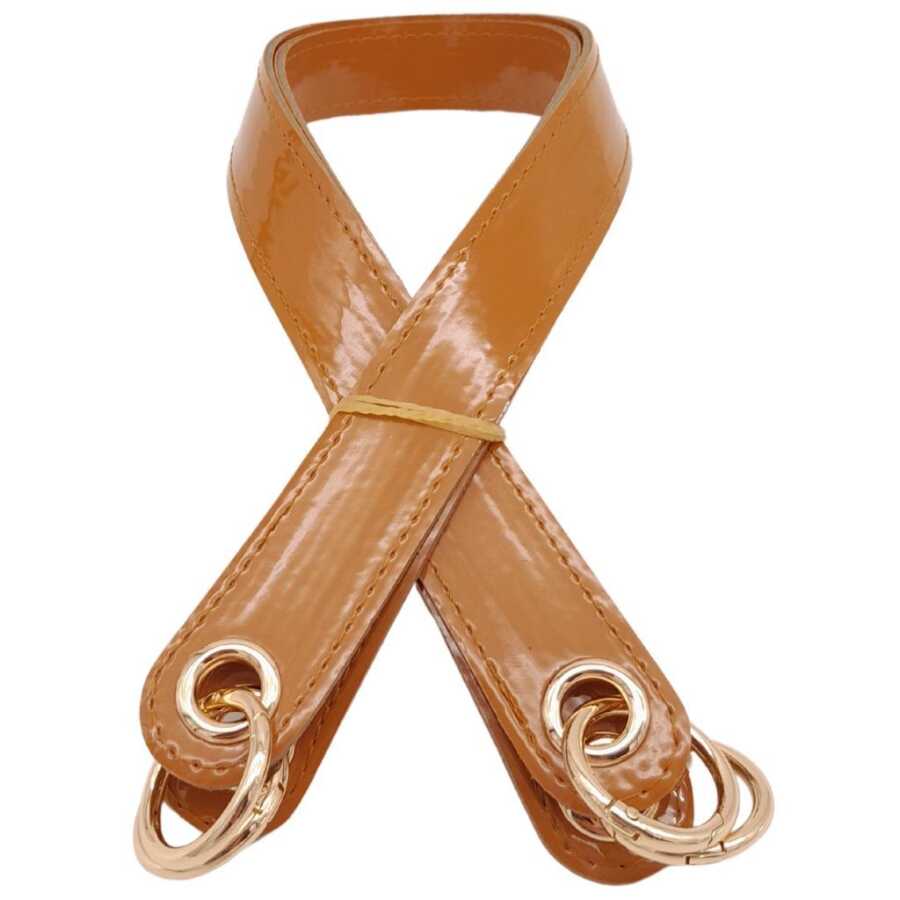 Angel Çanta Aksesuar Parlak Rugan Deri Kuş Gözlü Çift Çanta Sapı Açık Taba Renk Light Gold Metalli