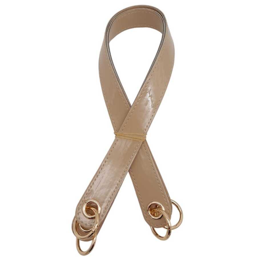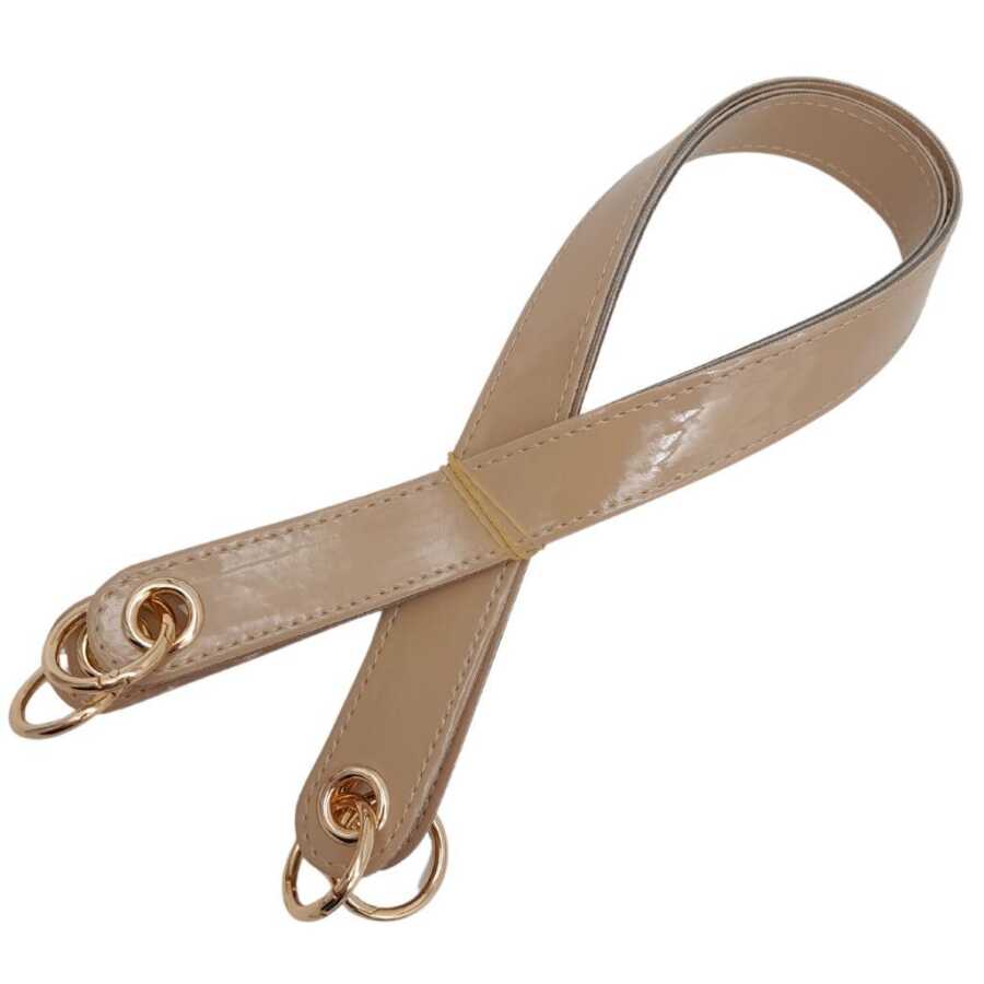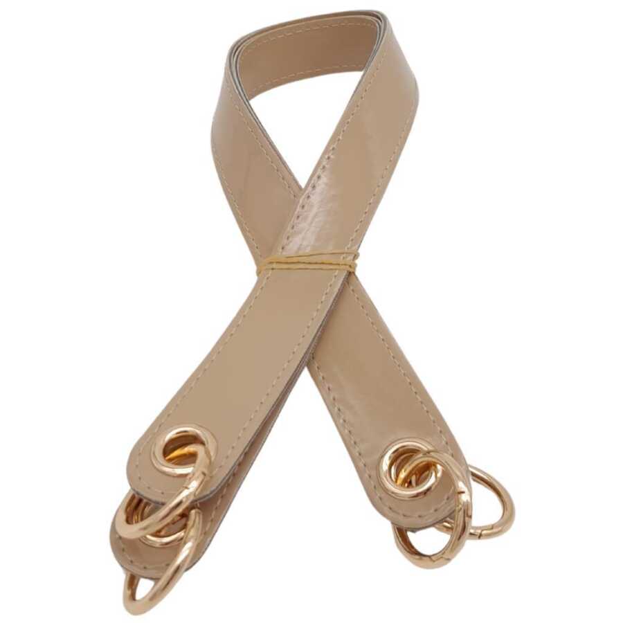 Angel Çanta Aksesuar Parlak Rugan Deri Kuş Gözlü Çift Çanta Sapı Bej Renk Light Gold Metalli
