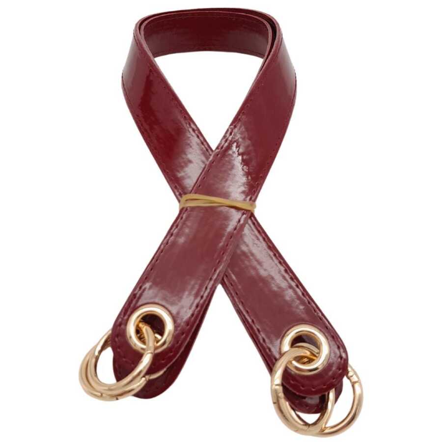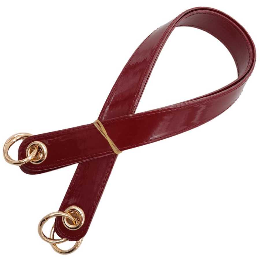 Angel Çanta Aksesuar Parlak Rugan Deri Kuş Gözlü Çift Çanta Sapı Bordo Renk Light Gold Metalli