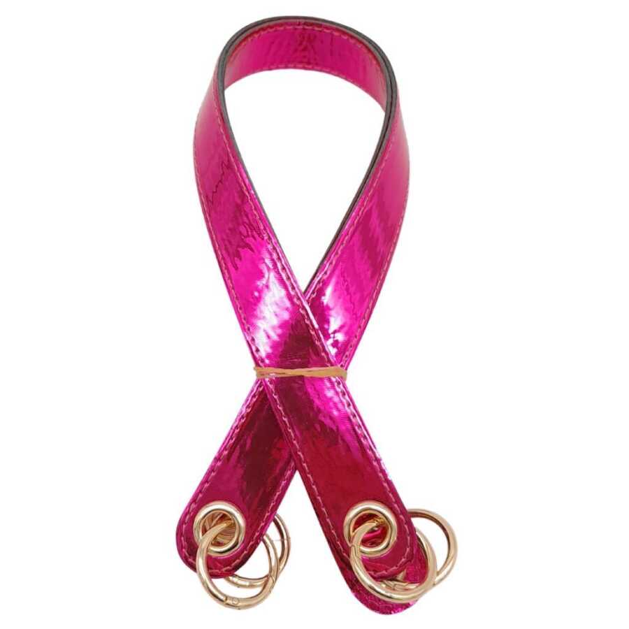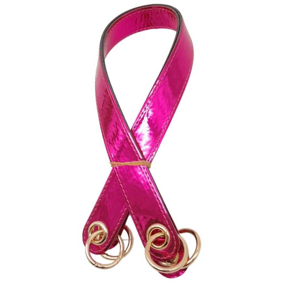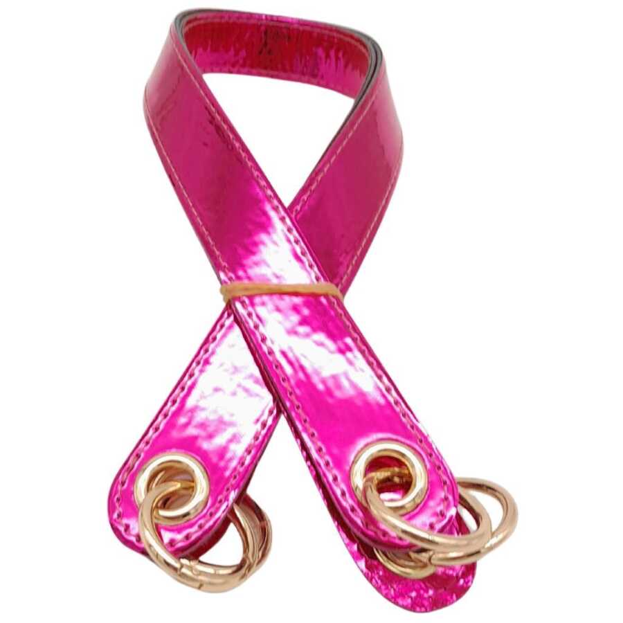 Angel Çanta Aksesuar Parlak Rugan Deri Kuş Gözlü Çift Çanta Sapı Fuşya Renk Light Gold Metalli