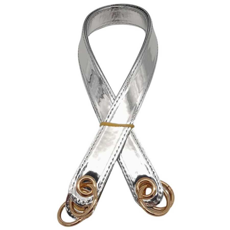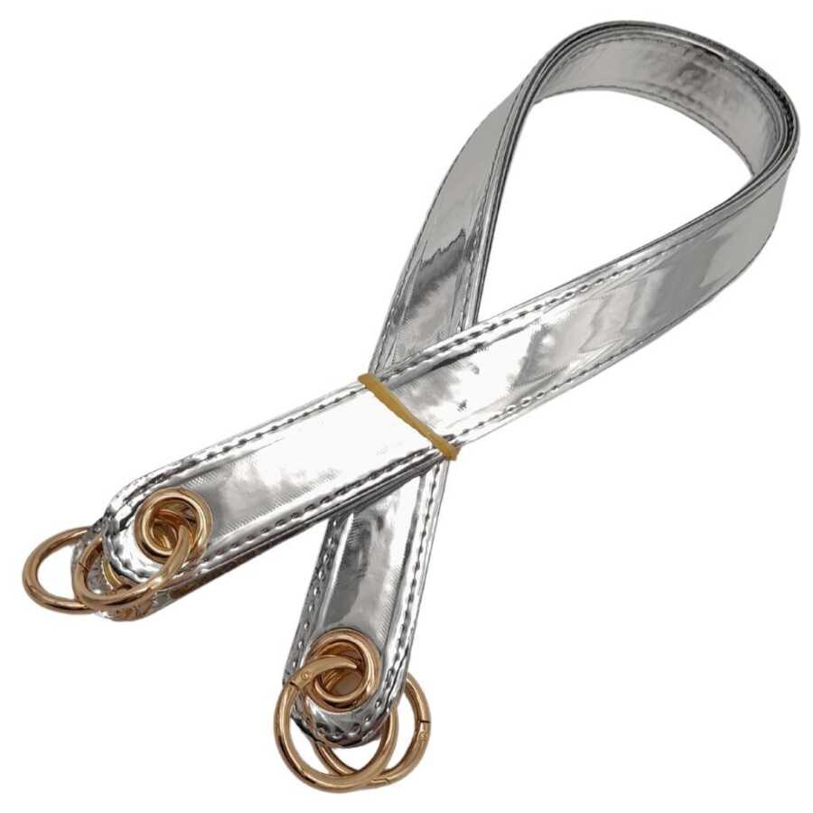 Angel Çanta Aksesuar Parlak Rugan Deri Kuş Gözlü Çift Çanta Sapı Gri Renk Light Gold Metalli
