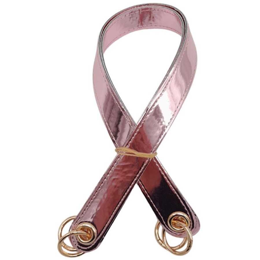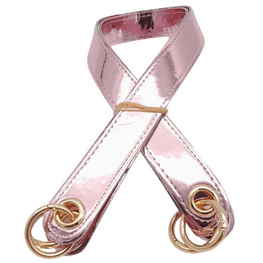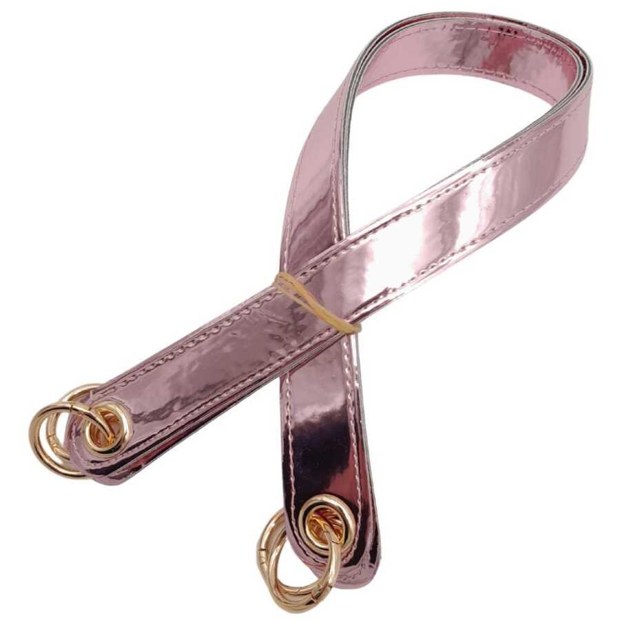 Angel Çanta Aksesuar Parlak Rugan Deri Kuş Gözlü Çift Çanta Sapı Pudra Renk Light Gold Metalli