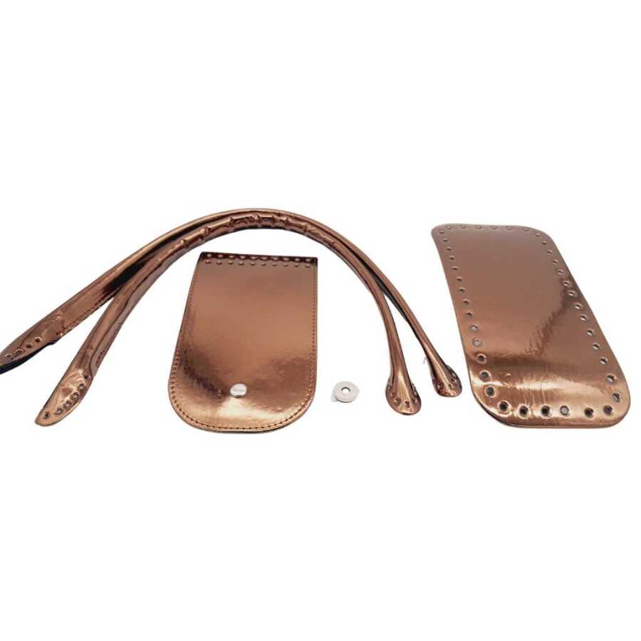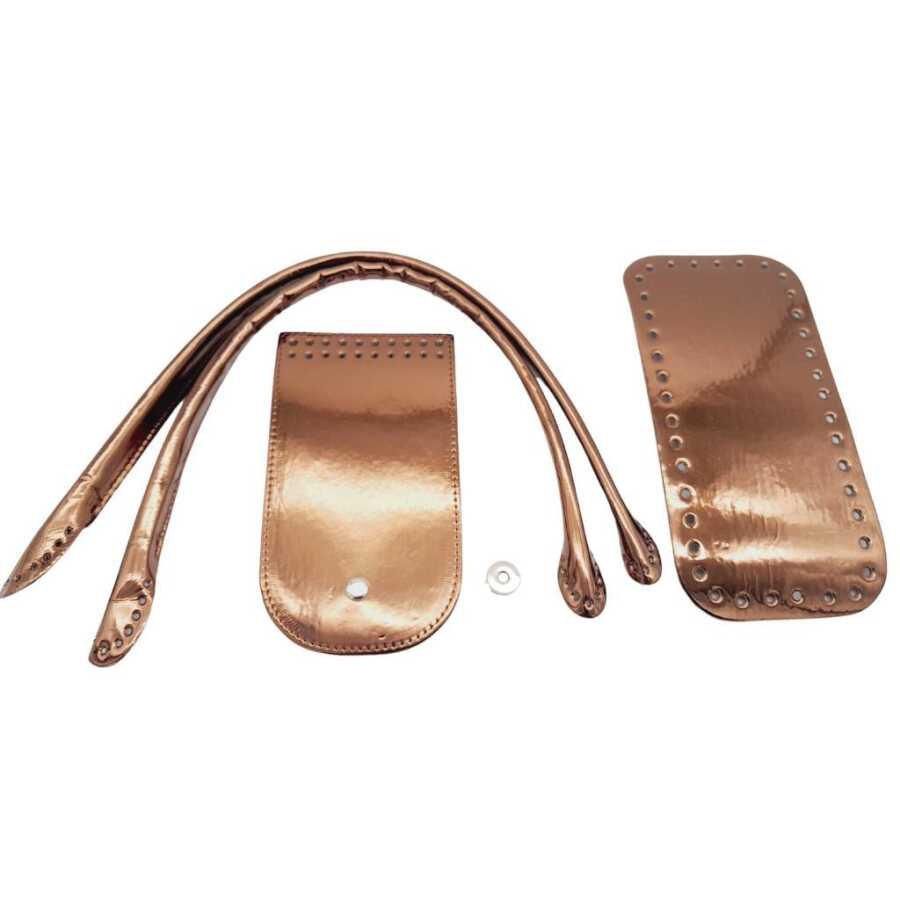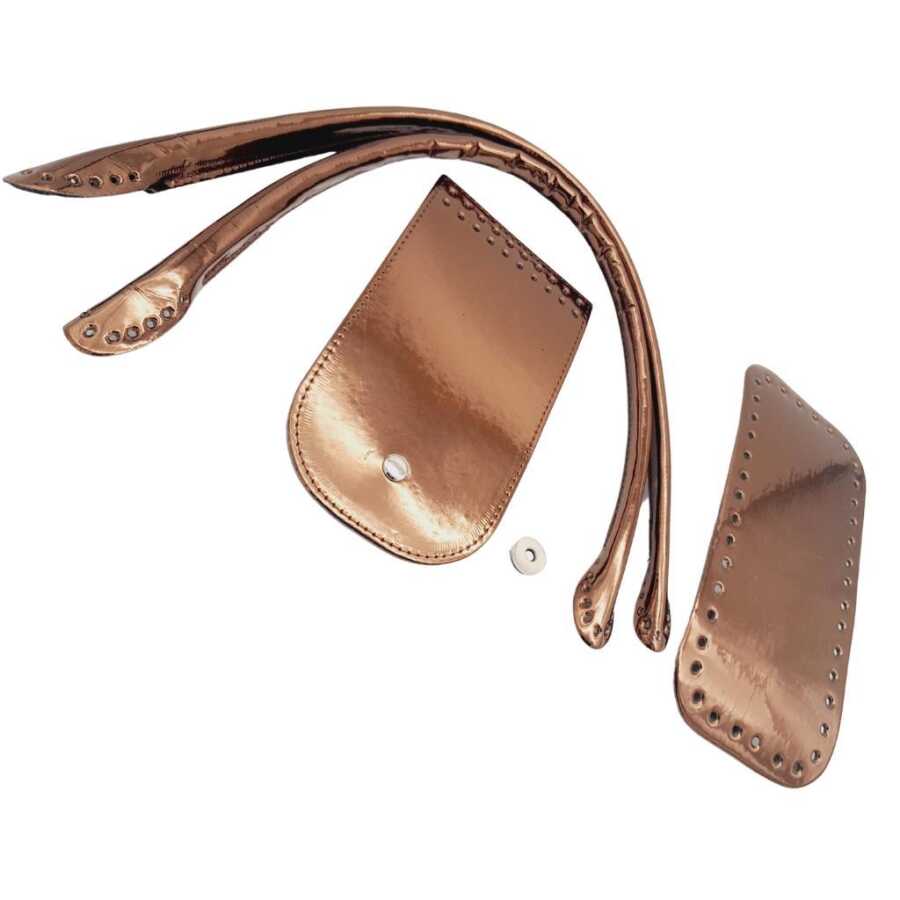 Angel Çanta Aksesuar Pelikan Çanta Saplı Parlak Rugan Deri Çanta Seti Bakır Renk