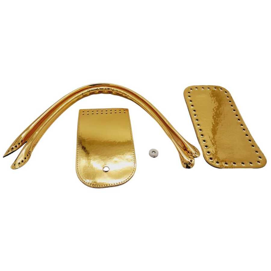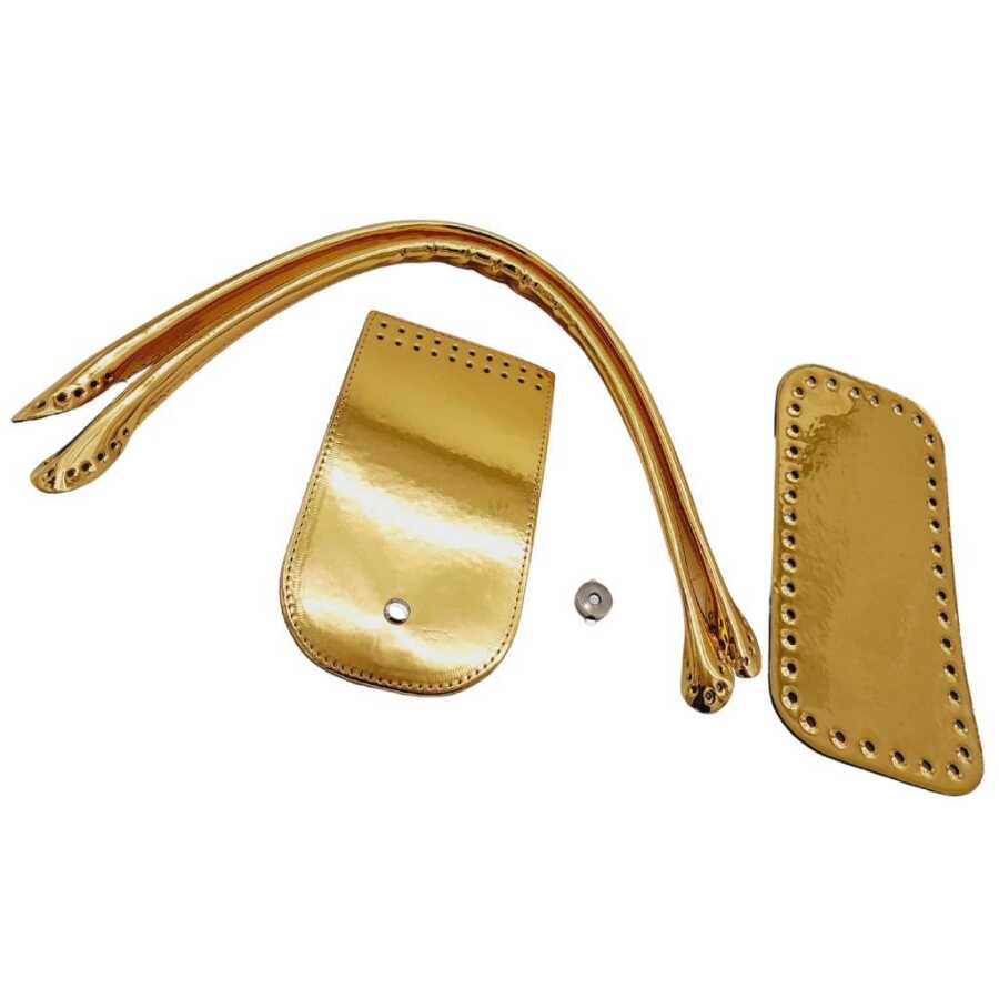 Angel Çanta Aksesuar Pelikan Çanta Saplı Parlak Rugan Deri Çanta Seti Gold Renk