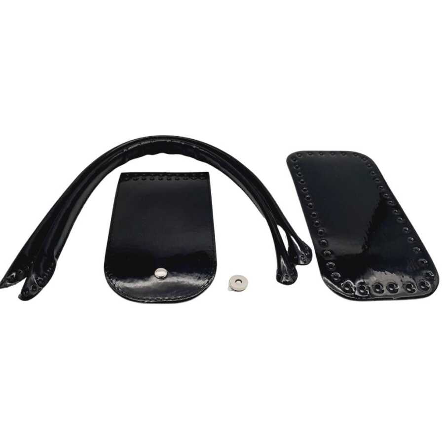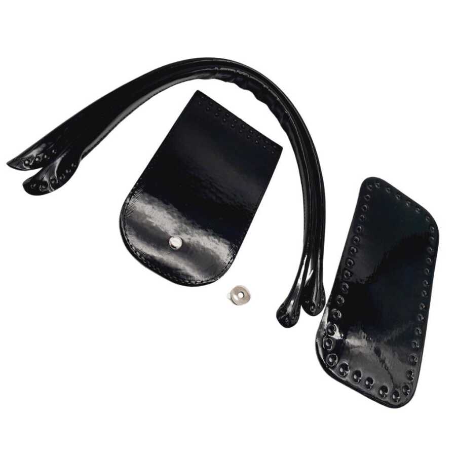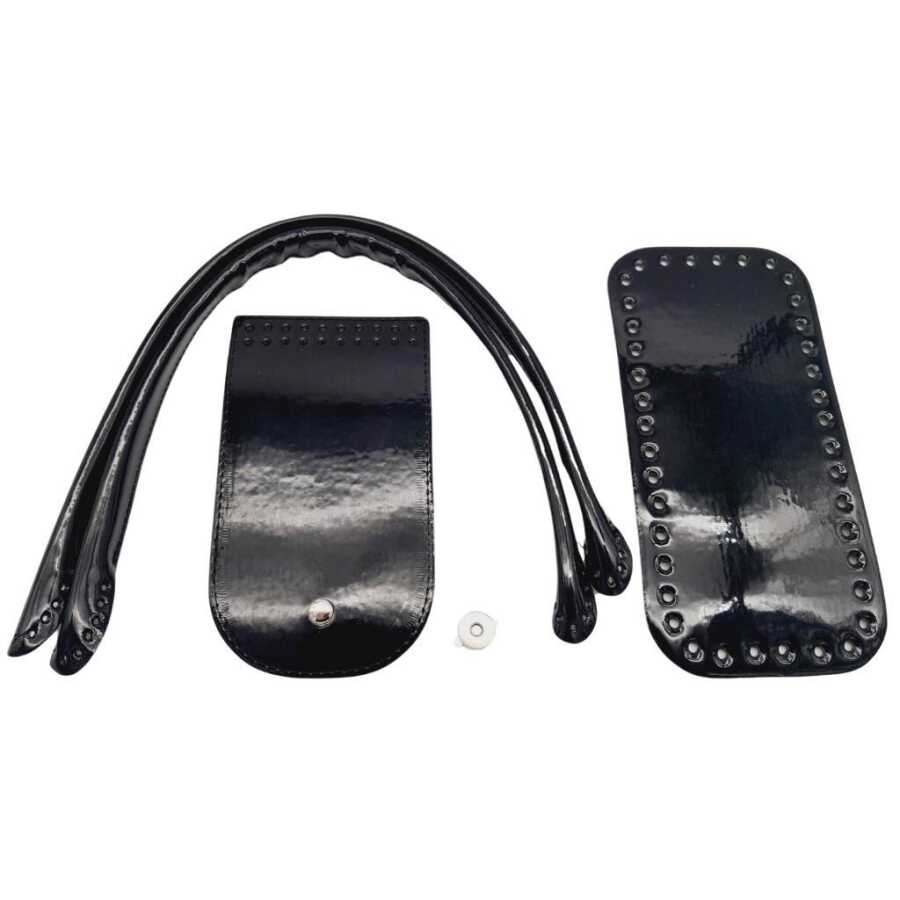 Angel Çanta Aksesuar Pelikan Çanta Saplı Parlak Rugan Deri Çanta Seti Siyah Renk