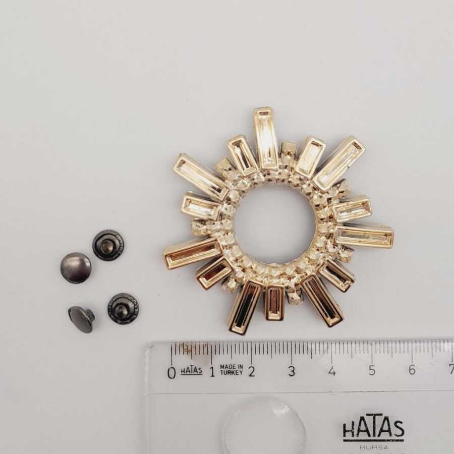 Çap: 5,5 cm Renk: Light Gold Örgü çantaların üzerine süs olarak takılır. El yapımı çantaların güzelliğine güzellik katar. Trokları ile monte edilir. Montaj sırasında çekiç benzeri bir araç ile troğu sıkıştırmanız gerekir.