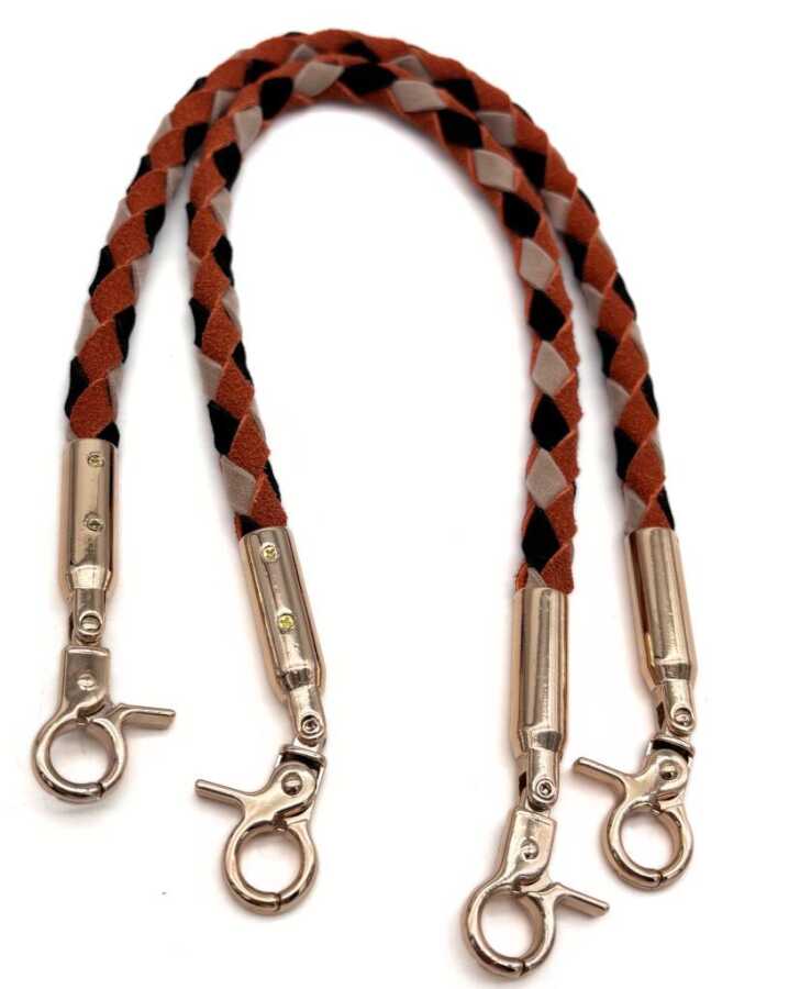 43cm örme suni deri çanta sapı. Uçlarında açılıp kapanabilen kancalar vardır. Ayrıca bir aparat kullanmadan örgü çantalarınıza doğrudan monte edebilirsiniz. Yaylı halka veya D halka kullanarak da monte edebilirsiniz. Renkleri: Bej, Taba, Siyah