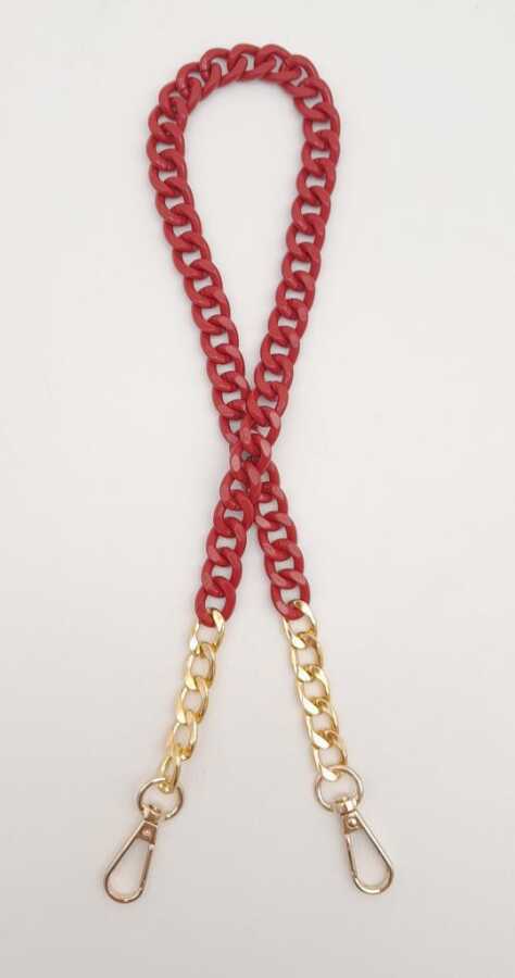 Angel Çanta Aksesuar Renkli Metal 60 cm Kancalı Zincir Kırmızı
