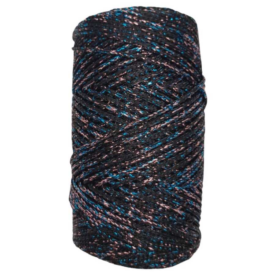 Angel Çanta Aksesuar Renkli Simli Polyester Makrome Siyah Renk 200 gr No:02
